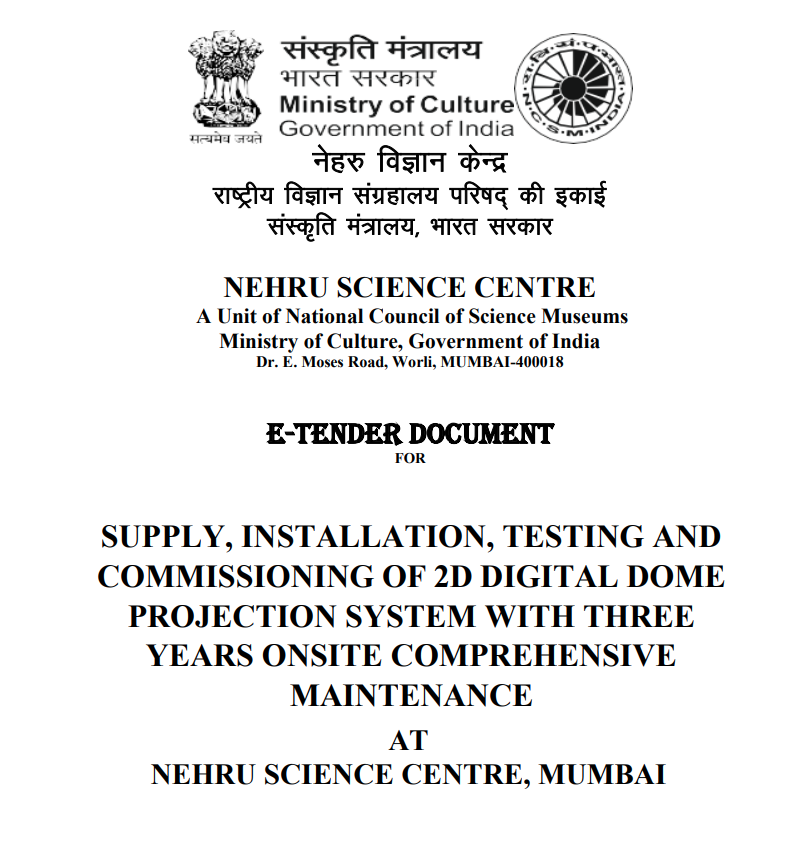 SITC of 2D Digital Dome Projection System at Nehru Science Centre, Mumbai